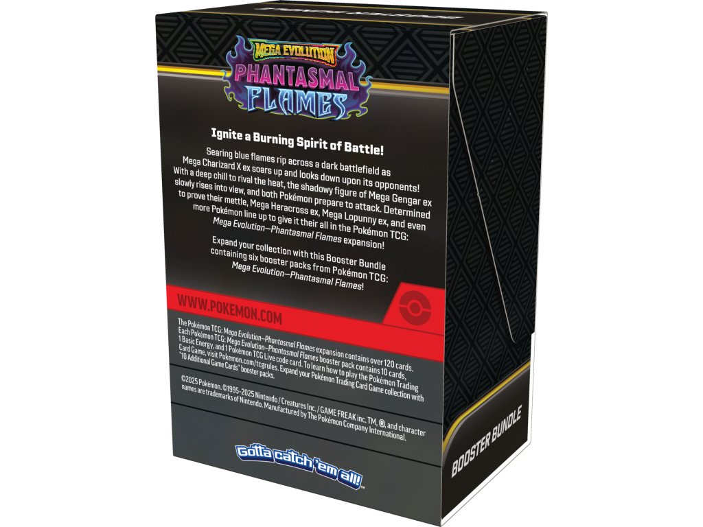Pokémon TCG: Mega Evolution Phantasmal Flames Booster Bundle obsahuje: