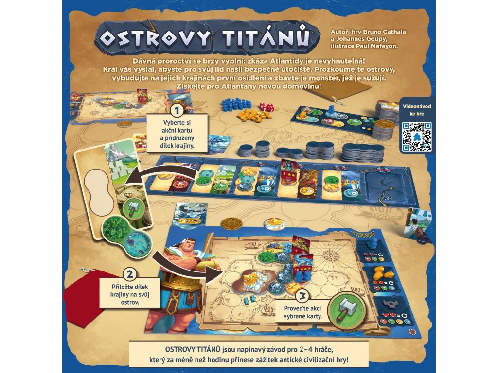 Hra Ostrovy titánů je svižná strategická hra připomínající kratší 4X hru. První, kdo nasbírá 5 bodů a také zbaví svůj ostrov všech monster, zvítězí! Jsou tři způsoby, jak získávat body: povolávat titány, stavět chrámy či kovat vzácné medailony z orichalka – bájného kovu, který umí vytěžit jen Atlanťané.