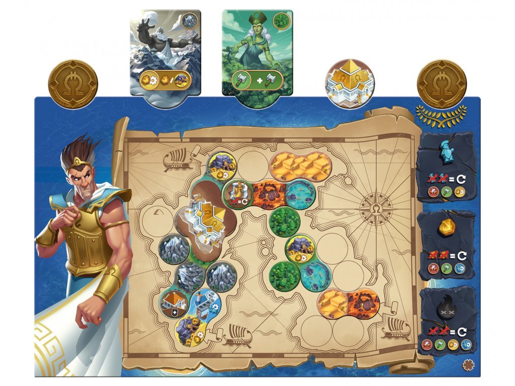 Vítězství dosáhnete optimálním střídáním 4 možných akcí: Při boji s monstry můžete zbavit svůj ostrov mytických hrozeb. Při náboru hoplítů získáte nové stoupence, čímž zvýšíte své šance jak při boji s monstry, tak při širším výběru možných akcí v příštích tazích. Při výstavbě buď získáte vítězný bod vykováním orichalkového medailonu či stavbou chrámu, nebo postavíte budovu, která vám přinese trvalý efekt do konce hry. A konečně při těžbě orichalka získáte nugety cenného kovu, o který v této hře jde nejvíc a který vás dokáže přiblížit k vítězství!