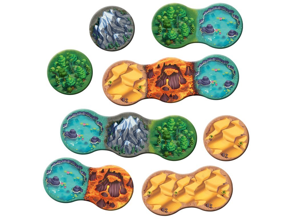 Dílky krajiny znázorňují váš postup při průzkumu ostrova. Typy krajiny, které na dílku najdete, určují, jaké zde můžete postavit budovy či chrámy. Přemýšlejte proto bedlivě, kam dílek umístíte. Utvoříte-li skupinu políček stejného typu krajiny, přilákáte pozornost titána... a budete moci využít jeho služeb. Na jednom typu krajiny – vulkánech – sídlí bájná monstra. Pokud je dokážete porazit, získáte z nich kořist, což vám ve hře může přinést značný náskok. Nedají vám však svou kůži lacino... souboj s monstrem vás muže stát cenné hoplíty či nemožnost věnovat se v daném tahu rozvoji své infrastruktury. Leč dokud vám na ostrově sídlí monstra, vyhrát nemůžete...